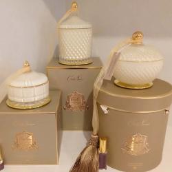 Cote Noire-Small Art Deco Candle Cream and Gold, Blonde Vanilla 200g