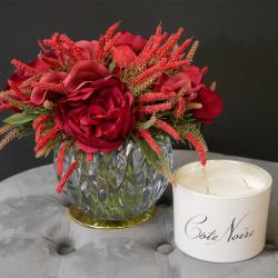 Cote Noire-Christmas Bouquet in Round Bowl - Burgundy