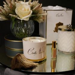 Cote Noire- Small Art Deco Candle White and Gold, Jasmine Flower Tea 200g
