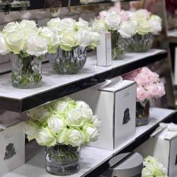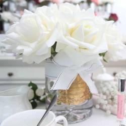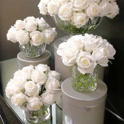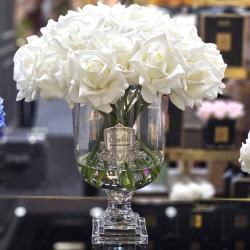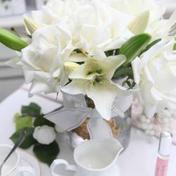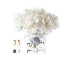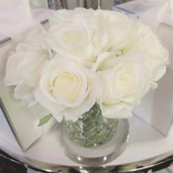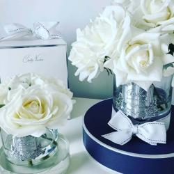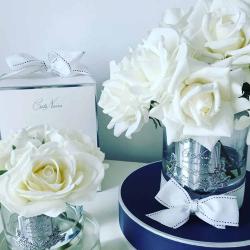 Cote Noire-Luxury Centrepiece 37 Rose Bud Bouquet White & Silver Badge
