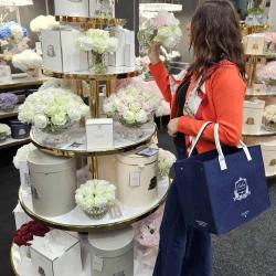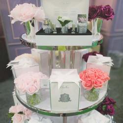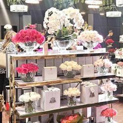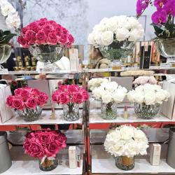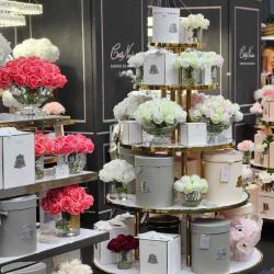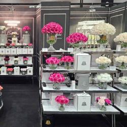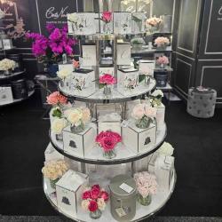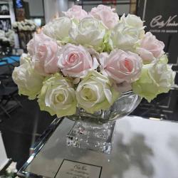 Cote Noire-Luxury Centrepiece 37 Rose Bud Bouquet Pink, Green & White Silver Badge