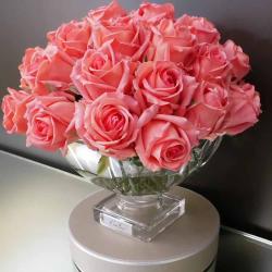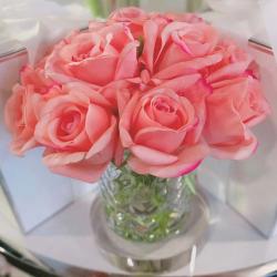 Cote Noire-Luxury Centrepiece 37 Rose Bud Bouquet French Pink & Silver Badge