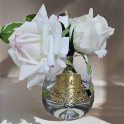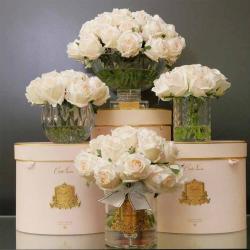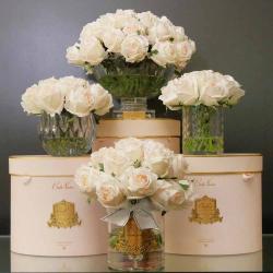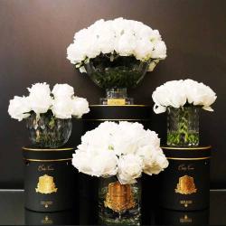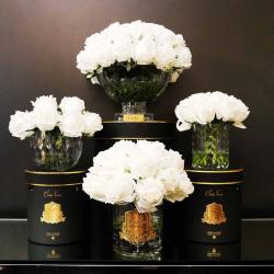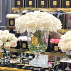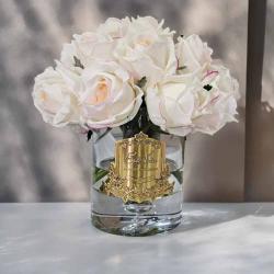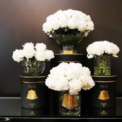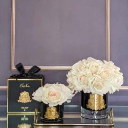 Cote Noire-Luxury Centrepiece 37 Rose Bud Bouquet White & Gold Badge
