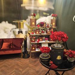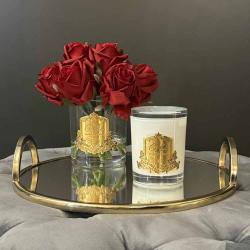 Cote Noire-Luxury Centrepiece French Rose Bouquet Red & Gold Badge