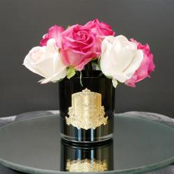 Cote Noire-Premium Bouquet-Mixed Magenta & Blush Rose Buds Dark Glass