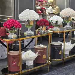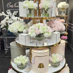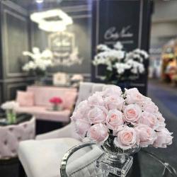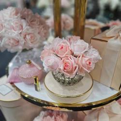 Cote Noire-Luxury Centrepiece 37 Rose Bud Bouquet Pink Blush & Gold Badge