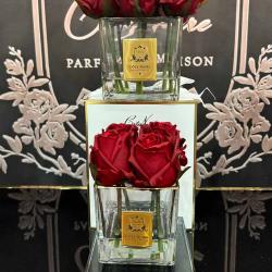Cote Noire-Couture 4 Rose Buds Square Clear Vase Gold & Red