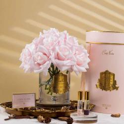 Cote Noire-Luxury Centrepiece French Rose Bouquet Pink Blush & Gold Badge