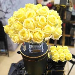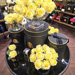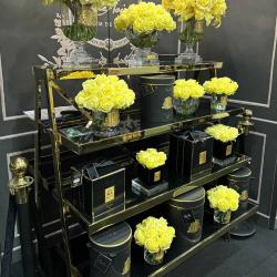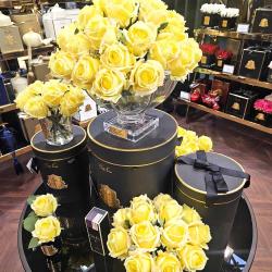 Cote Noire-Luxury Centrepiece 37 Rose Bud Bouquet Yellow & Gold badge