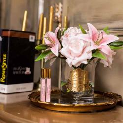 Cote Noire-Luxury Lilies & Roses Bouquet Dark Glass Pink