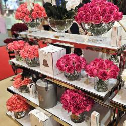 Cote Noire-Couture 9 Rose Buds Square Clear Vase Gold & Red