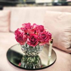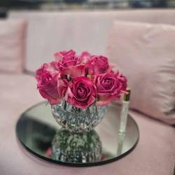 Cote Noire-Luxury Centrepiece 37 Rose Bud Bouquet Magenta & Silver Badge
