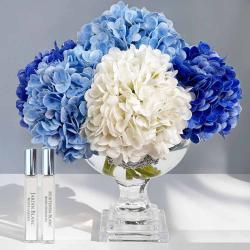 Cote Noire-Luxury Provence Hydrangeas Bouquet Mixed Blue Silver Badge Large