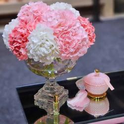 Cote Noire-Luxury Provence Hydrangeas Bouquet Mixed Pink Gold Badge Large